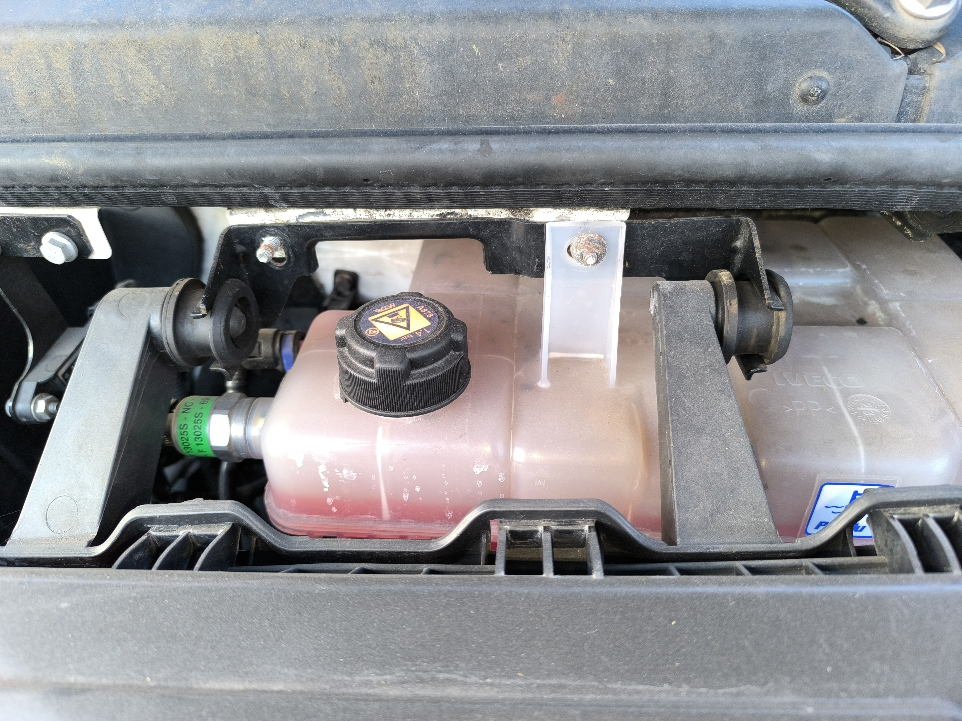 Als je weet wat je doet en het zou nodig zijn, kan je in dit reservoir koelvloeistof bij gieten. Opgelet, nooit zonder overleg met mij.