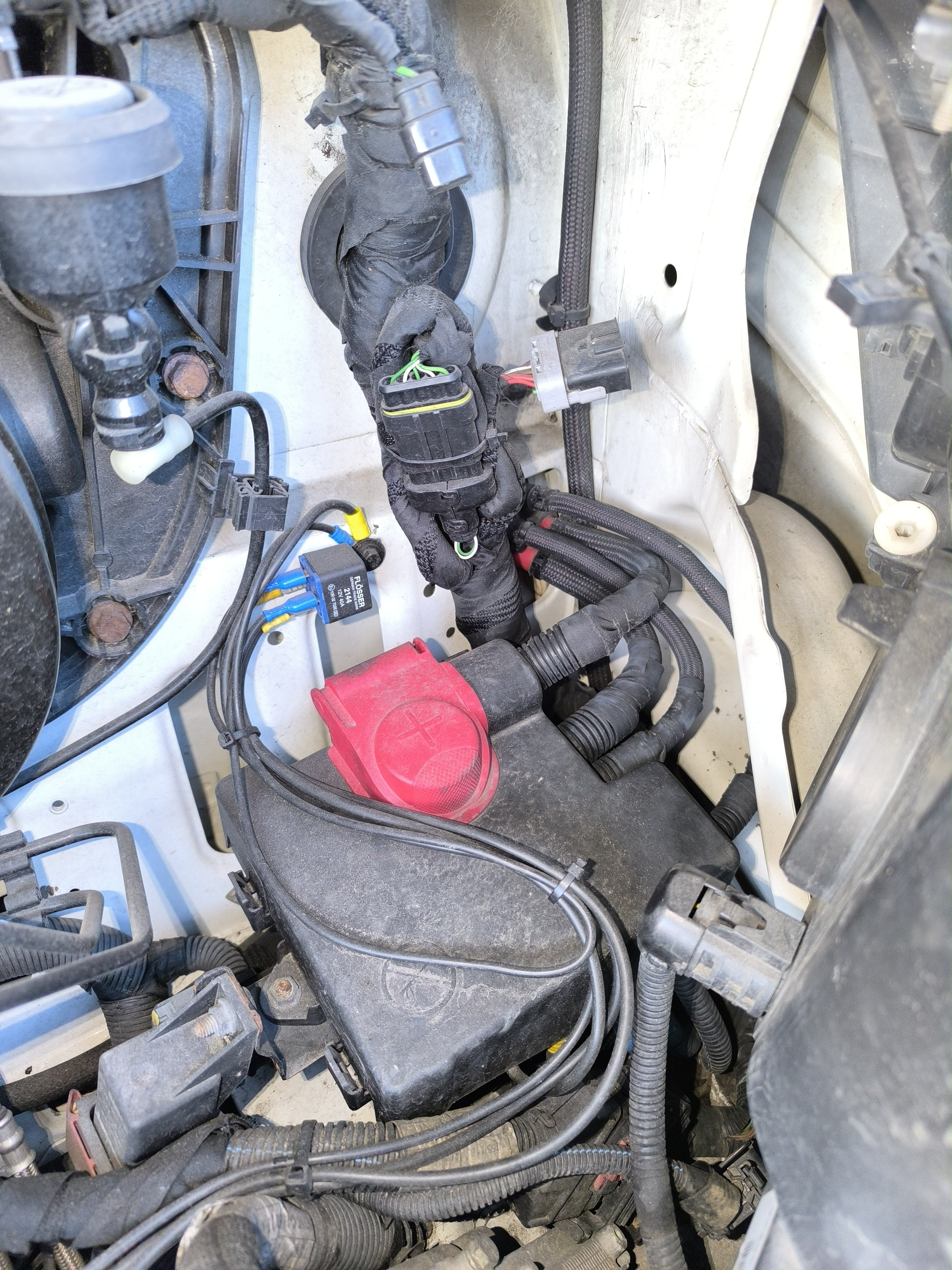 Als de batterij desondanks echt niet wil laden wanneer motor draait: check de zekering links van de bestuurderszetel. Staat het rode hendeltje niet horizontaal?