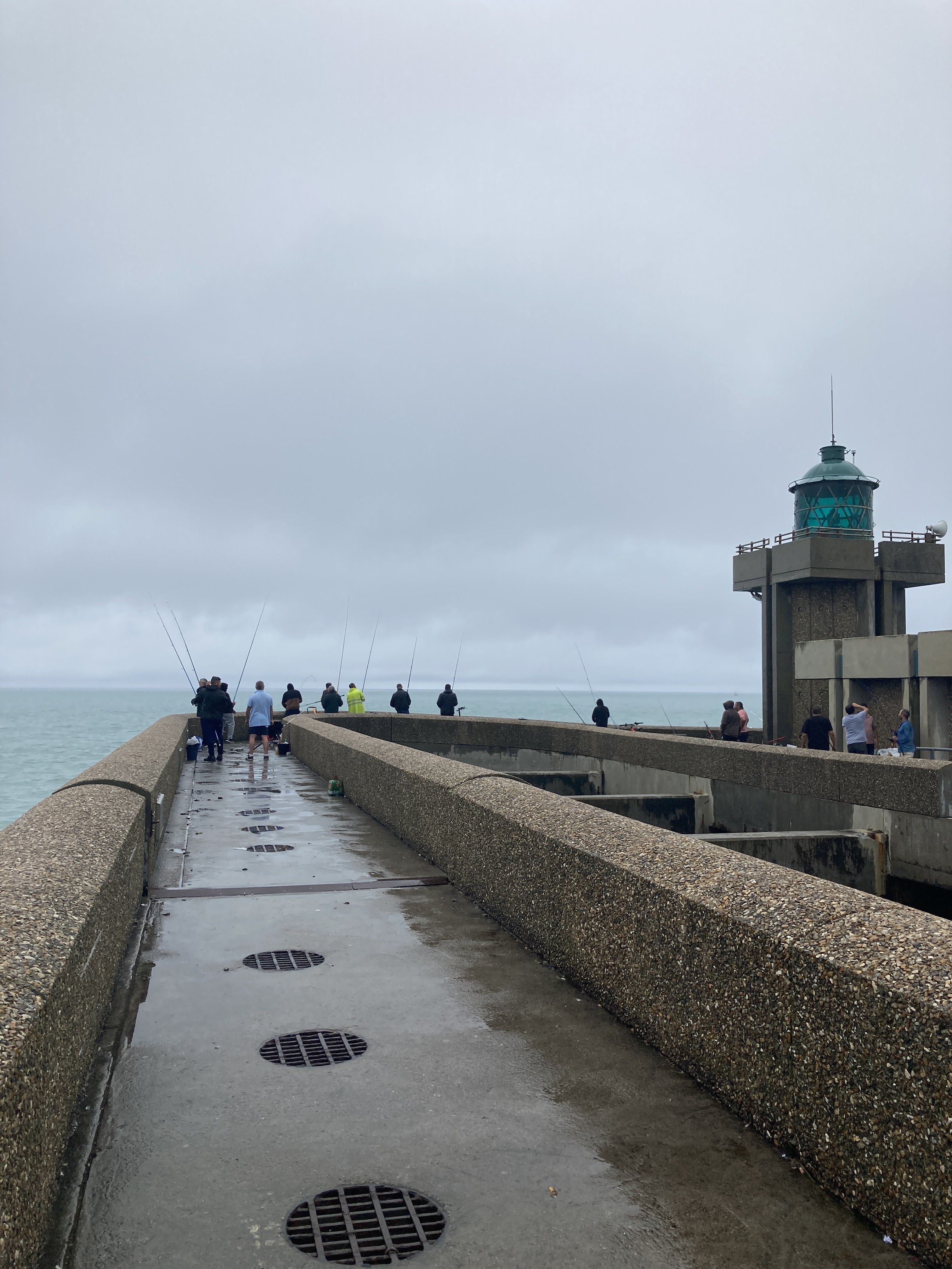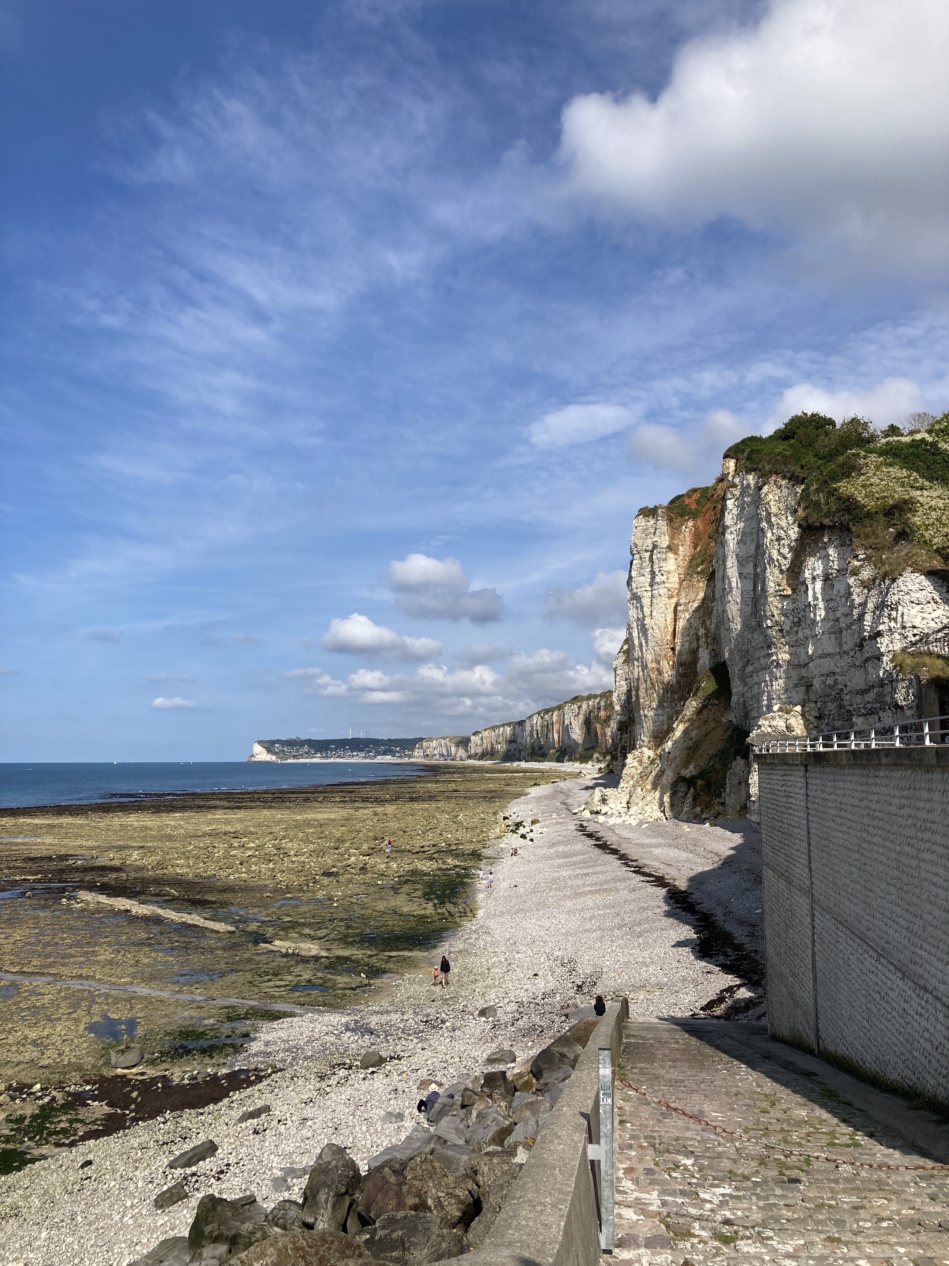 Onze reis begon in Dieppe. We parkeerden vlak bij de pier en wandelden langs de vele vissers, nadien slenterden we door het charmante stadscentrum. Denk: pastelgevels, gezellige terrasjes (bij mooi weer) en boulangeries die naar warme croissants ruiken. Een fijne kennismaking met de kust van Normandië.