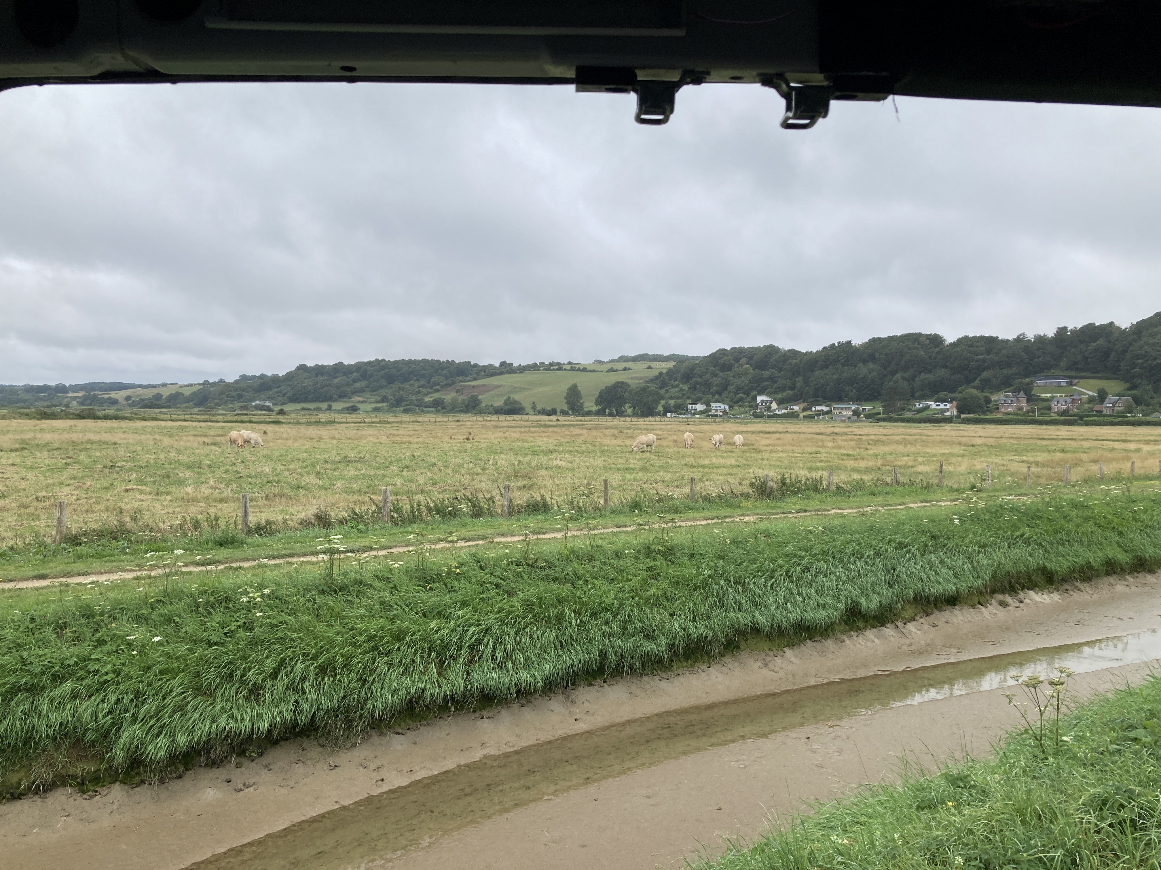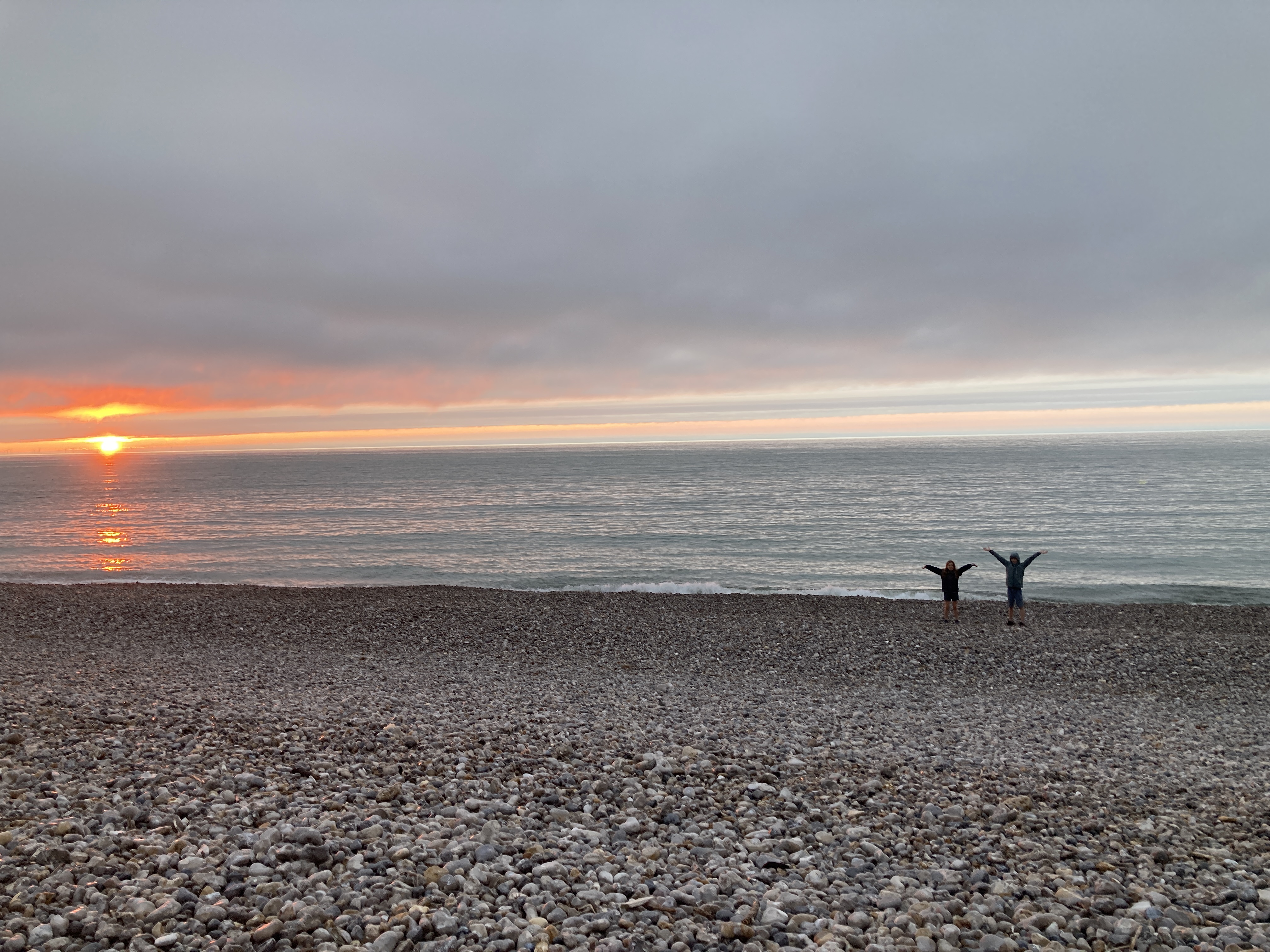Een van de camperovernachtingen deden we in Veulettes-sur-Mer, op een grote, goed uitgeruste camperplaats net buiten het dorp. We stonden met zicht op de velden én de ondergaande zon die een prachtige gloed aan de kliffen gaf.