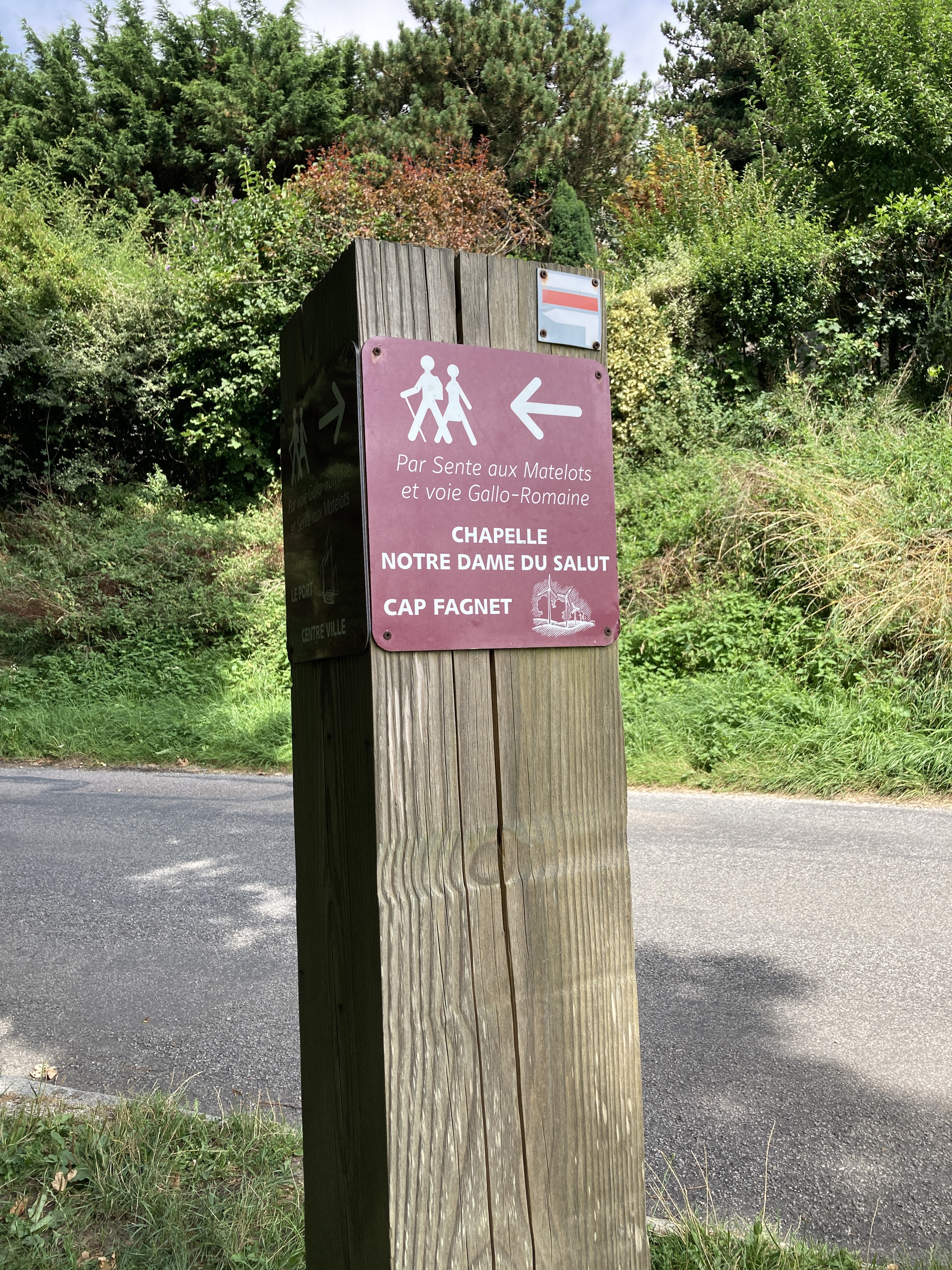 In Sotteville-sur-Mer vonden we weer zo’n uitzichtpunt-met-waaigat. Het strand beneden lonkte, maar een duidelijk bord maakte ons meteen duidelijk: verboden toegang wegens gevaar op vallende rotsblokken. Jammer, maar begrijpelijk.