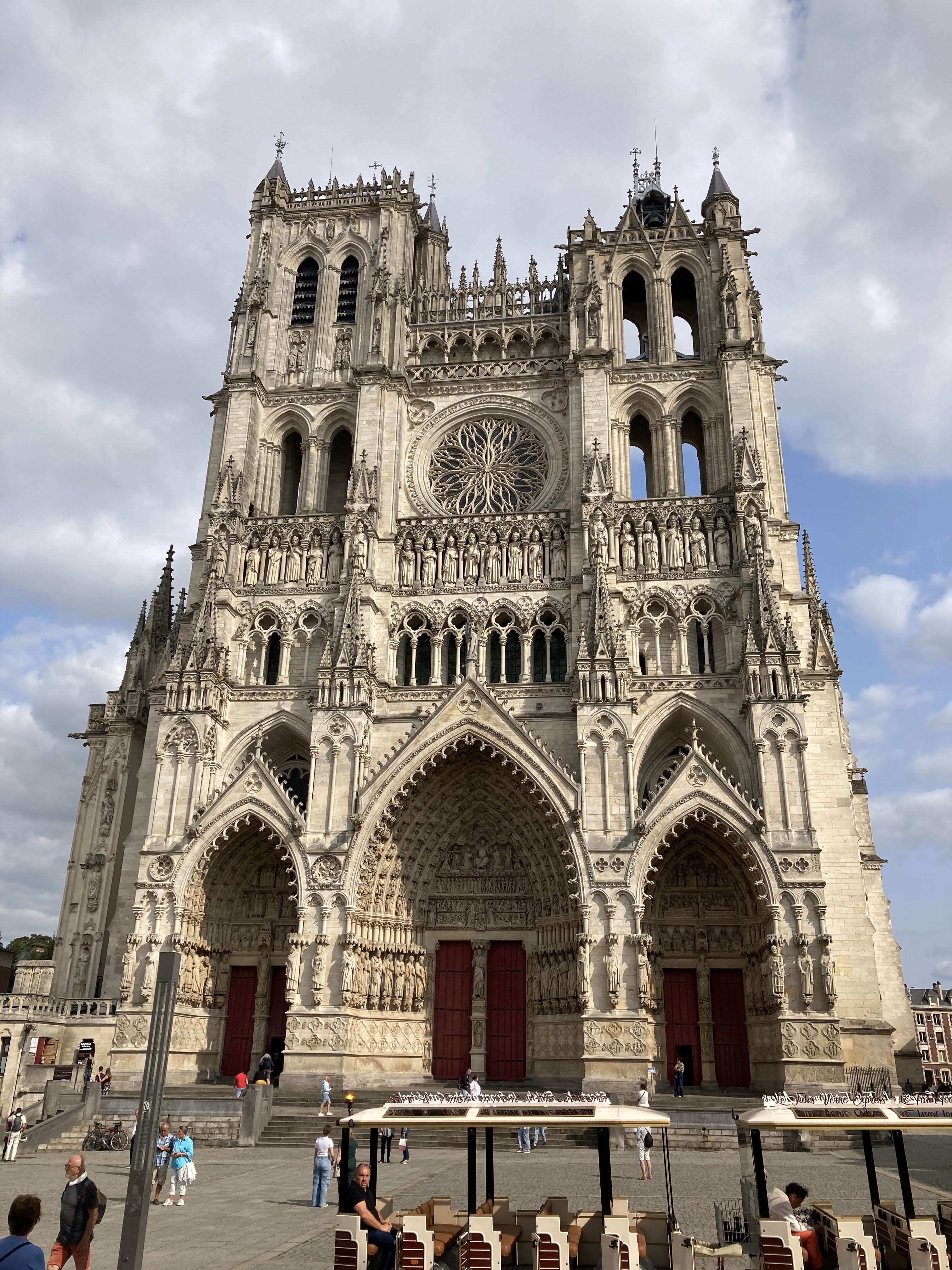 We begonnen onze ontdekkingstocht bij de Notre-Dame van Amiens. Hoewel we de kathedraal alleen van buiten bekeken, was dat al meer dan de moeite waard. Dit gotische meesterwerk – groter dan die van Parijs! – torende indrukwekkend boven ons uit.