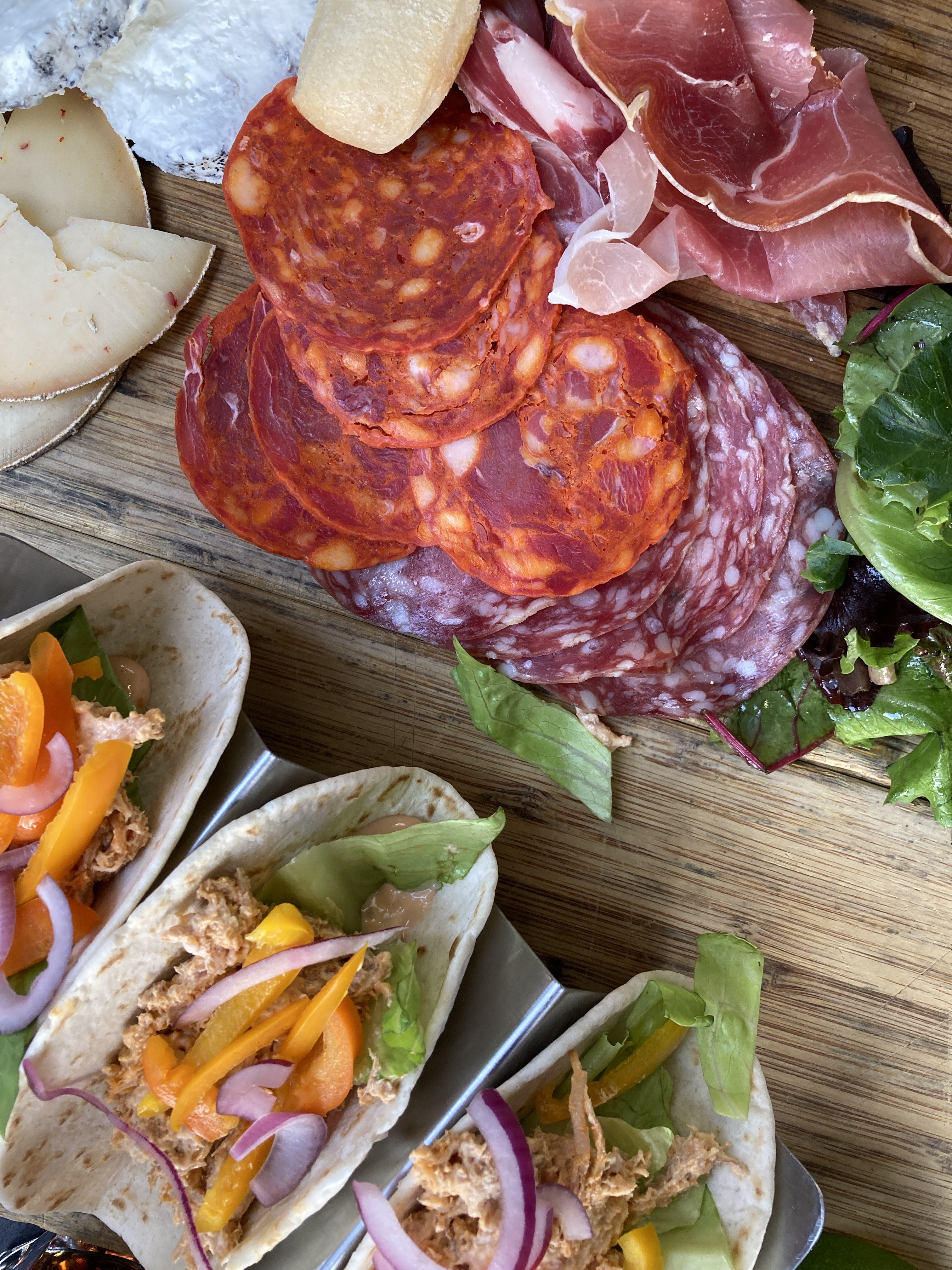 Na al dat wandelen en spelen hadden we trek – en gelukkig vonden we een plek op het terras van Au Bureau. Heerlijke gerechtjes om te delen en om onze dag in Amiens af te sluiten.