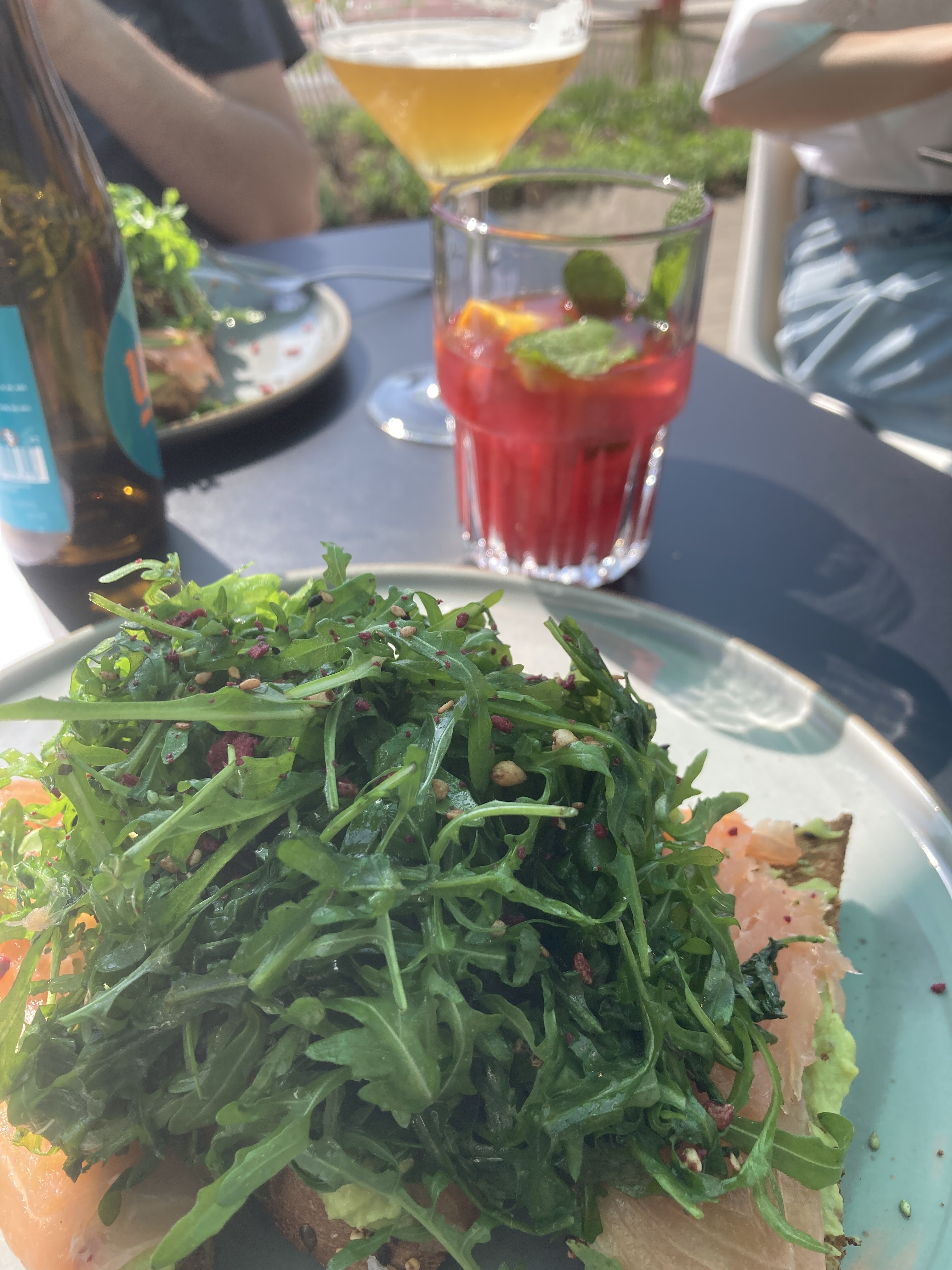 Onderweg zijn er heel wat mogelijkheden om te genieten van een hapje en een drankje. Je passeert onder andere Bar Bidon, Boer Janssens en Brouwerij Huyghe (voor het roze olifant-bier Delirium Tremens). Wij stopten bij Krunch voor iets tussen brunch en lunch.