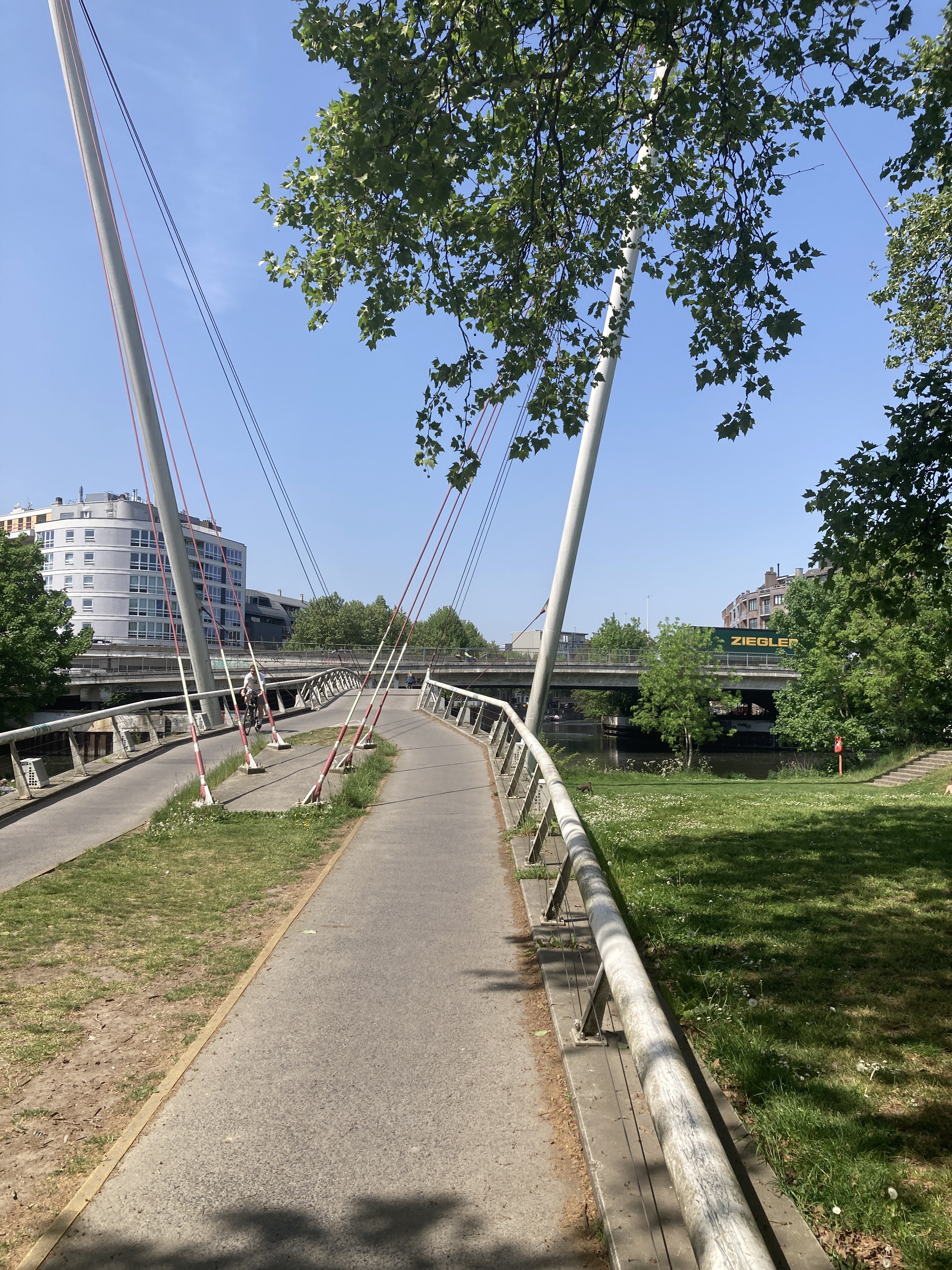 Een absoluut hoogtepunt, letterlijk en figuurlijk, was de Fietsbrug in Zwijnaarde. Deze moderne brug voor trage weggebruikers verbindt de Groene Vallei met andere natuurgebieden en biedt een prachtig uitzicht over de omgeving. We kwamen ook nog langs het Reivisschepark, één van de toegangspoorten tot het Parkbos.