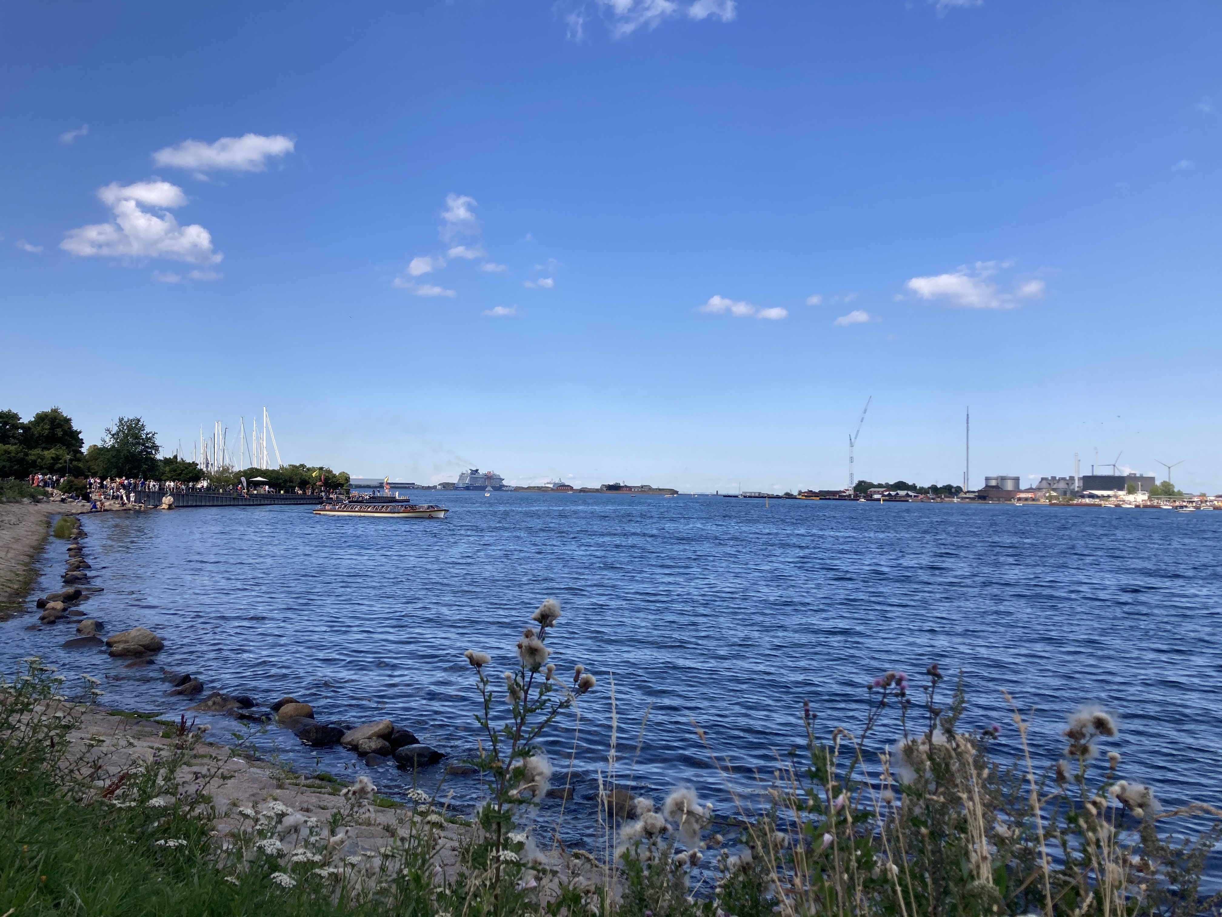 We begonnen onze verkenning in Islands Brygge Park, een fijne groene plek aan het water. Deze groene strook aan het water biedt zicht op moderne architectuur, het kanaal, en de beroemde havenbaden. Zwemmen deden we niet, maar we picknickten op een bankje met vers brood, kaas en fruit uit onze voorraad. Een lokale jogger wenste ons “god morgen”, en even voelden we ons helemaal blenden in deze stad.