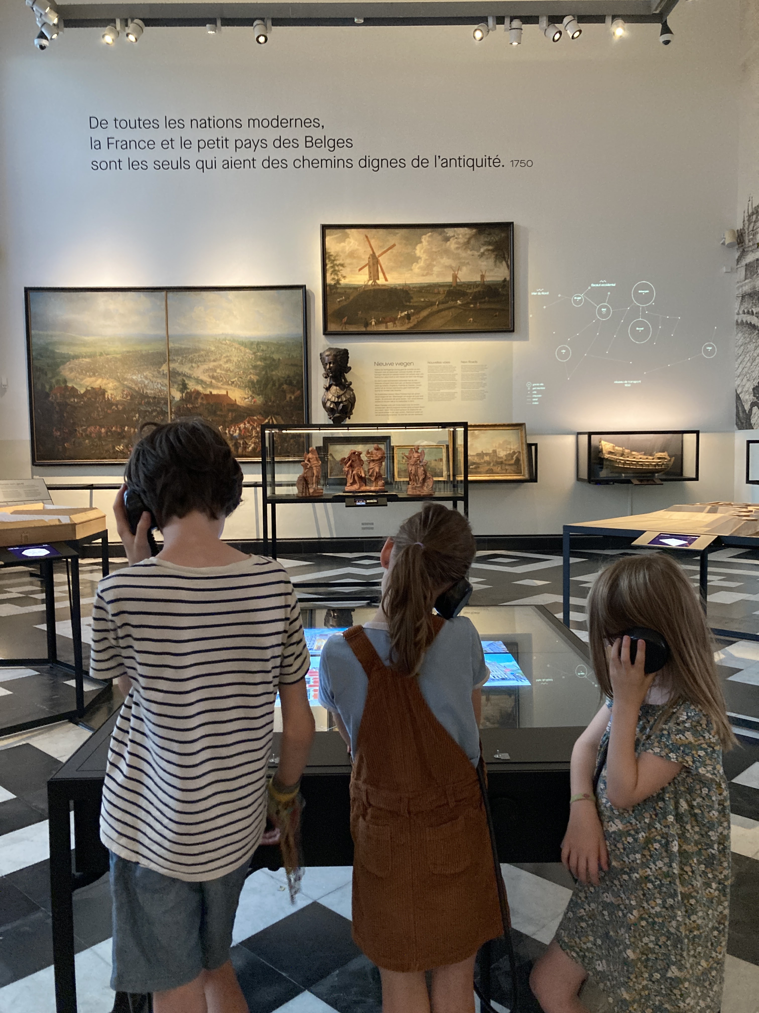 Naast de tijdelijke expo bezochten we ook de permanente collectie van het STAM. Hier reis je door de geschiedenis van Gent, van middeleeuwen tot nu. Onze kinderen vonden vooral de opgegraven spulletjes indrukwekkend: minuscule dobbelstenen, een speelgoedriddertje, en allerlei alledaagse voorwerpen uit lang vervlogen tijden. In verschillende zalen zijn er audiopunten waar je fragmenten kunt beluisteren. Sommige zijn historisch en serieus, andere grappig. Een paar hoogtepunten volgens onze kinderen: De projectie waar je steden ziet groeien doorheen de eeuwen en het audiofragment over de boekenverbranding.